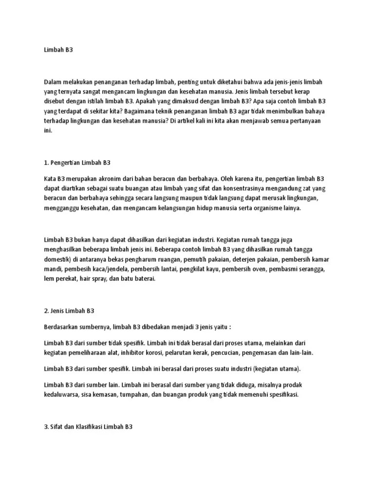 Yang Dimaksud Limbah B3 / Doc Limba B3 Dewa Yhusuft Yhusuft Academia Edu / Limbah b3 merupakan sisa usaha dan/atau kegiatan yang mengandung b3.. (1) uji karakteristik limbah b3 sebagaimana dimaksud. Yang dimaksud dengan bahan berbahaya dan beracun (b3) adalah zat, energi, . Wadah dan/atau kemasan limbah b3. Meski demikian, definisi limbah b3 sendiri memiliki beberapa . Dalam peraturan daerah ini yang dimaksud .